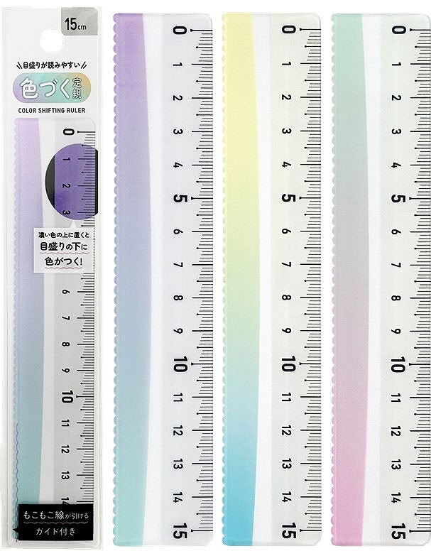 メモリが見やすい 色づく定規 15cm1個