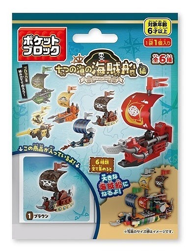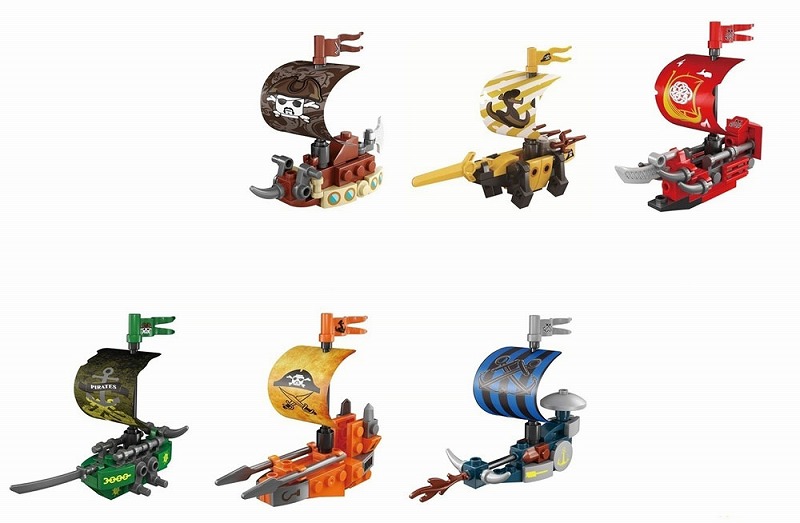 全6種を集めると大きな海賊船を作ることが出来ます。6種とも組み立てサイズは異なりますが1種あたり約4×8×8cm程度。6種で作る大きな海賊船は約6.8×13.3×17.3cmです。