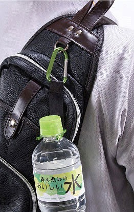 アウトドアレジャー・ハイキング・フェスなどで活躍します!ペットボトルの首にはめ込むだけで着脱も簡単。カラビナ付きなのでバッグやベルトにかけられます。