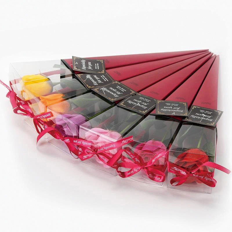 飾って香って楽しんだ後はお風呂で入浴剤として楽しめる「花のカタチの入浴剤」。 茎、リボン付で一輪ラッピングのフラワーギフトとして完成する商品です。