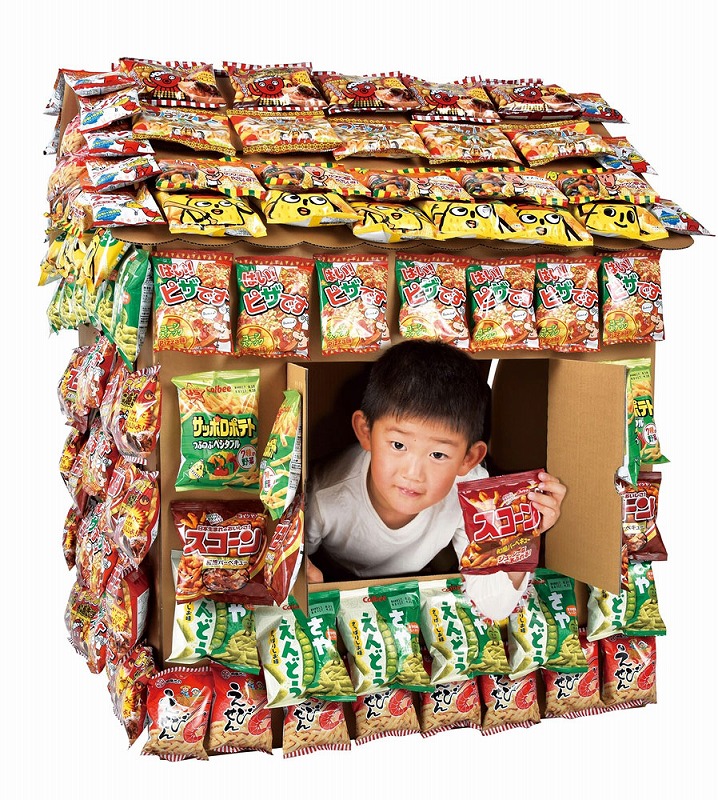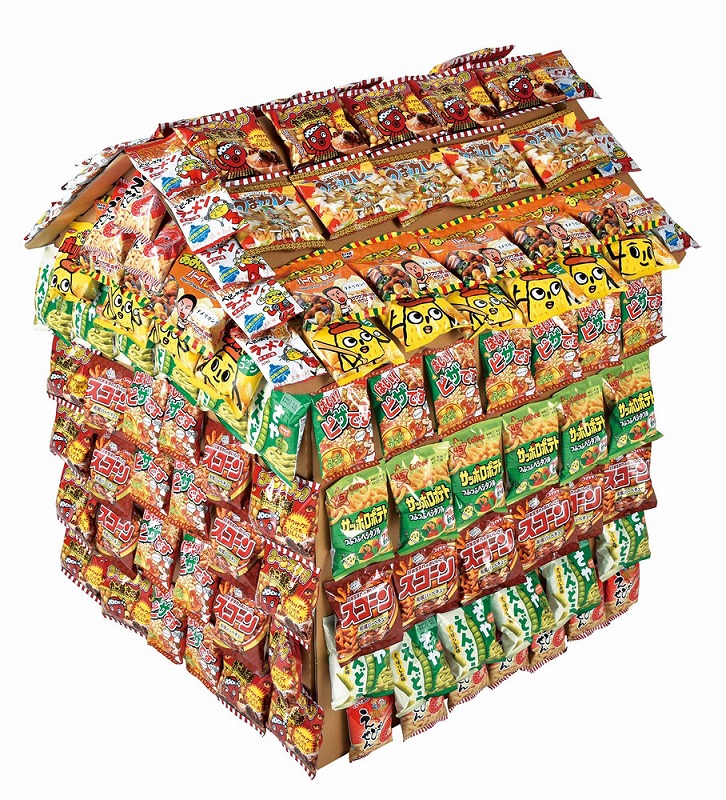 <セット内容> ダンボールハウス×1・両面テープ×1 お菓子取混×200 ※お菓子のパッケージや内容が異なる場合がございます。