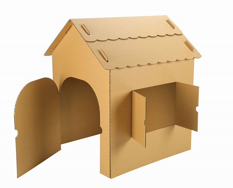 ダンボールハウスにお菓子を貼り付けて製作します。(作業時間目安:大人2人で1時間程度)