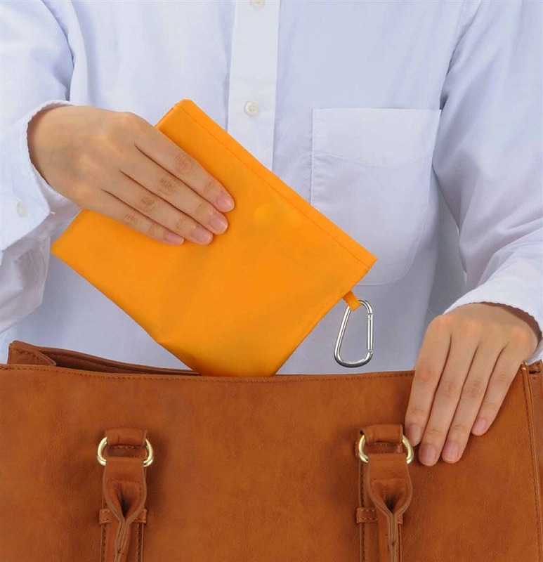 折りたたんでカラビナでカバンに引っ掛けておくこともできます。まとめ買いの日にも安心の大容量サイズです。肩掛けできるので大荷物でもラクラク。Ecolorシリーズは環境(Environment)に配慮する社会で活躍するエコバッグです。