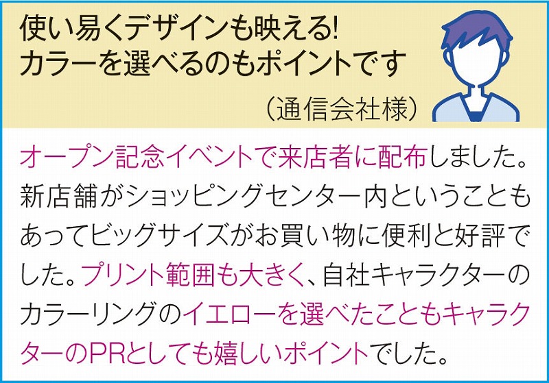 [旧来ご提供単価169円] 収納力抜群の大容量ショルダータイプ。企業カラーや「推し色」に合わせて色を選択でき、名入れも可能です。