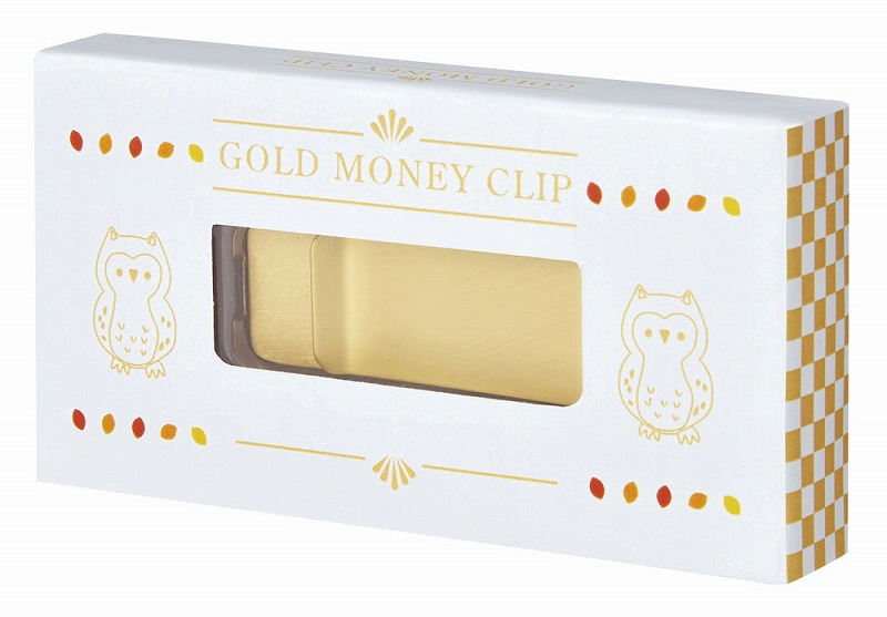 海外旅行に行った際にはチップを渡すときなど、使いこなすとなんだか”カッコイイ”マネークリップです。おしゃれな名入れを施せばオリジナル記念品として喜ばれます。縁起物である「ふくろう(不苦労)」をデザインしたパッケージが印象的です。