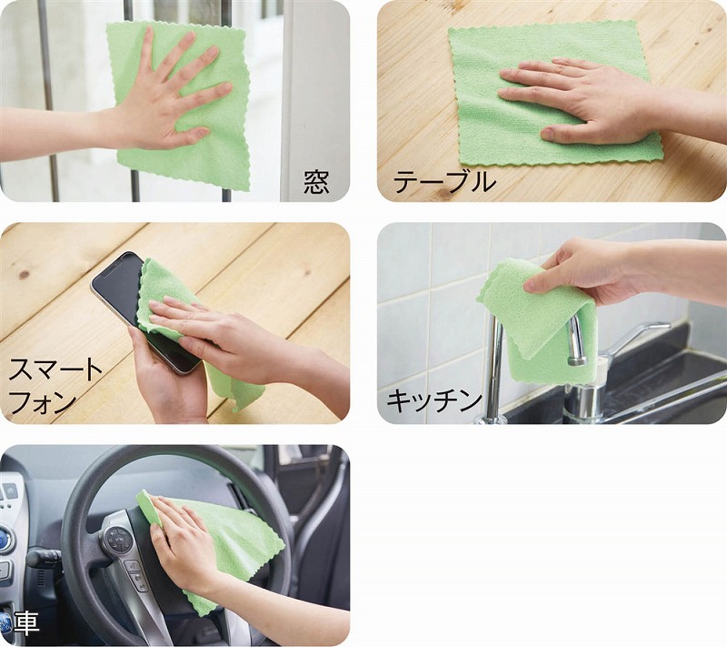 窓やテーブル、キッチンまわり、車のハンドル、スマホ画面など幅広く使える「ちょうどいい」クロスです。洗剤なしでも使用でき、汚れをしっかりキャッチ!超極細繊維マイクロファイバーで、柔らかく薄い素材はPC画面やメガネ、スマホの画面にも適しており、指紋や細かいホコリをきれいに拭き取ることができます。