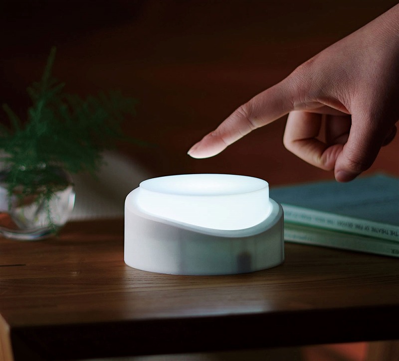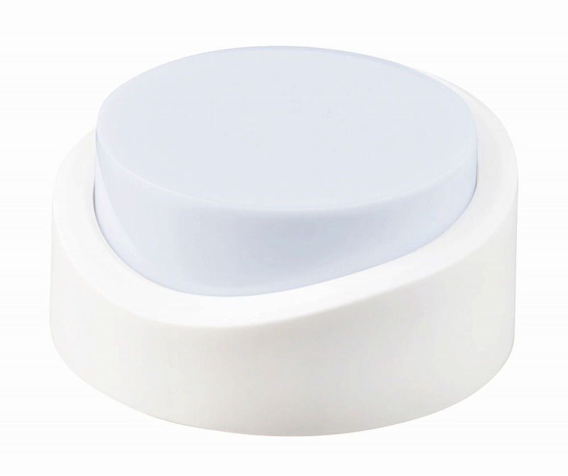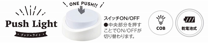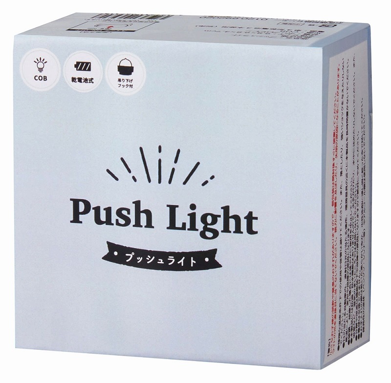 小さなスイッチではなく、本体を押すだけなのでお年寄りにも操作がカンタン。吊り下げフック付きなのでアウトドアや非常時にも役立ちます。