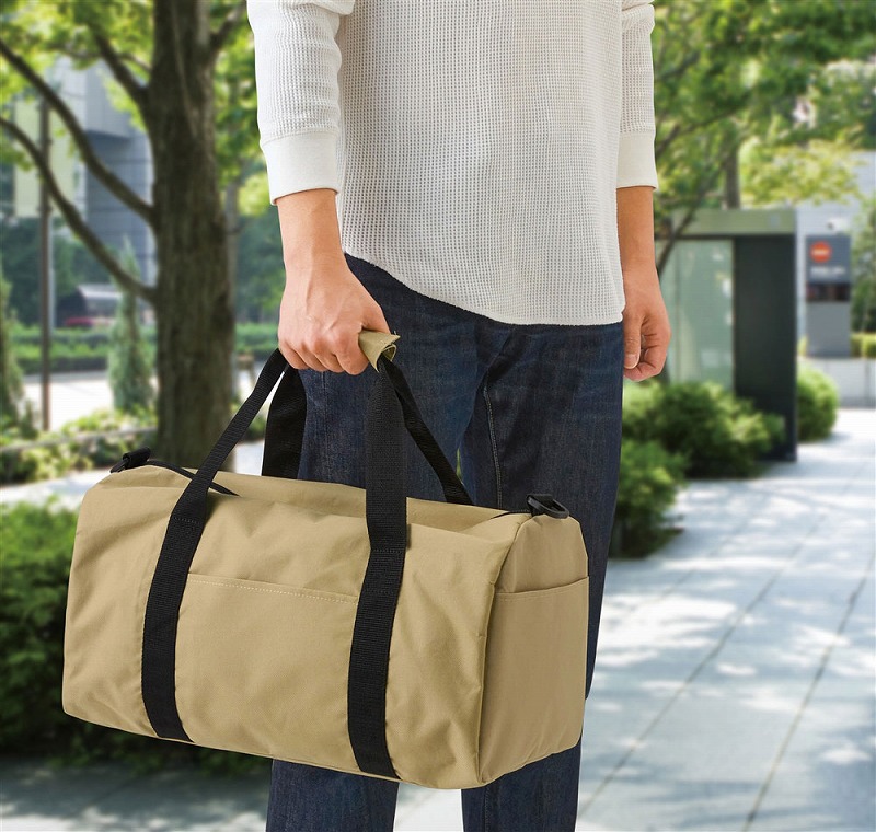 帰省や出張、部活などにも大活躍! 容量が大きくそこそこの重量物が入るので、手が痛くならないようにハンドグリップを付けたり、誰でも持ちやすいようにショルダー部分にはアジャスターを付けて長さ調節可能にしています。