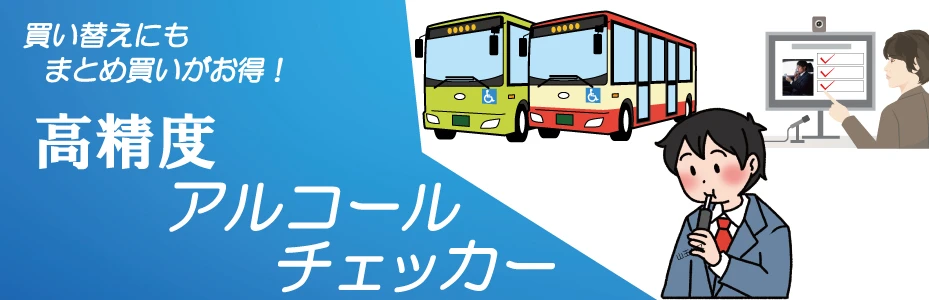 白ナンバー事業者、緑ナンバー事業者のアルコールチェック義務化が始まっています。5台以上の社用車をお持ちの企業や乗車定員11人以上の自動車が1台以上ある会社でも同様に、義務化されています。始業時と終業時に検査を行い、管理者に報告する必要があるため検査結果を素早く測定でき、管理方法がシンプルで簡単なタイプが好まれる傾向にあります。携帯用アルコールチェッカーに法人名を名入れしておけば盗難抑止にもなりおすすめです。センサー寿命があり、1年から3年程度での定期的な買い替えが必要になるため、まとめ買いがお得になる、高精度で好感度、測定結果を簡単に管理できるアルコールチェッカーがおすすめです。