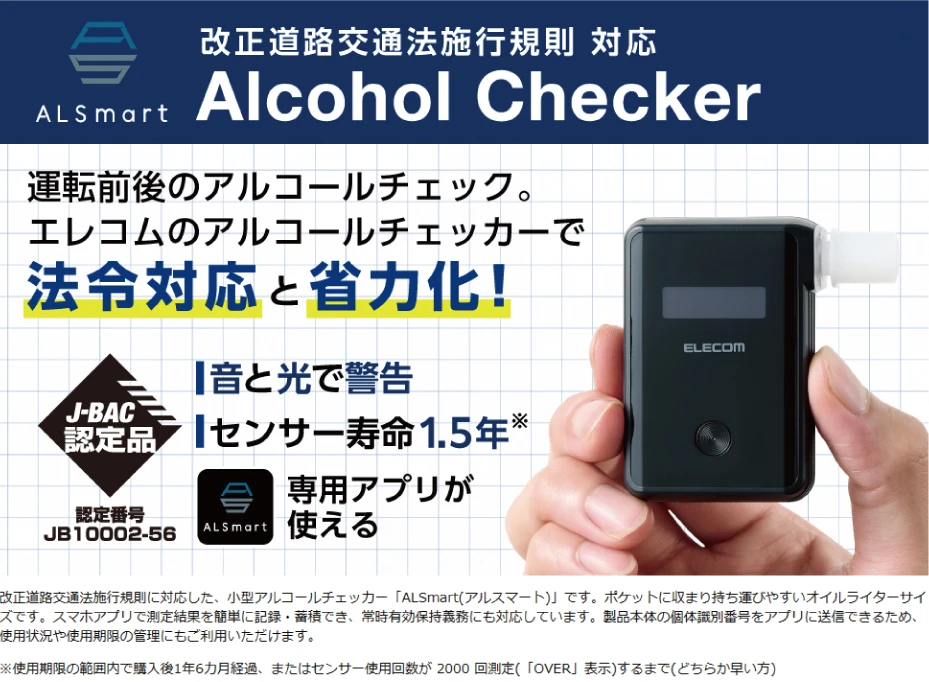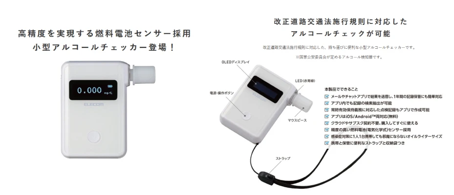 白ナンバー事業者・緑ナンバー事業者・法人向けエレコムアルコールチェッカー