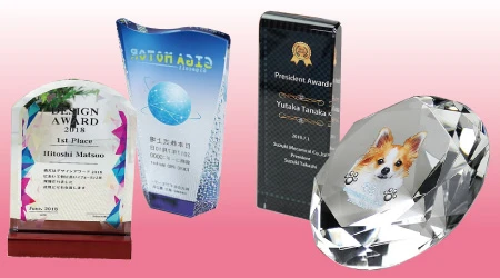 色々な形があり、選ぶのに少し迷ってしまうトロフィーや盾。