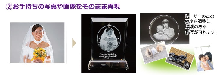 高級クリスタルで、世界に一つの記念品を作ることもできます。 ご利用いただける様々な加工デザインオプションをご覧ください。