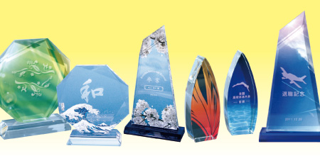 色々な形があり、選ぶのに少し迷ってしまうトロフィーや盾。