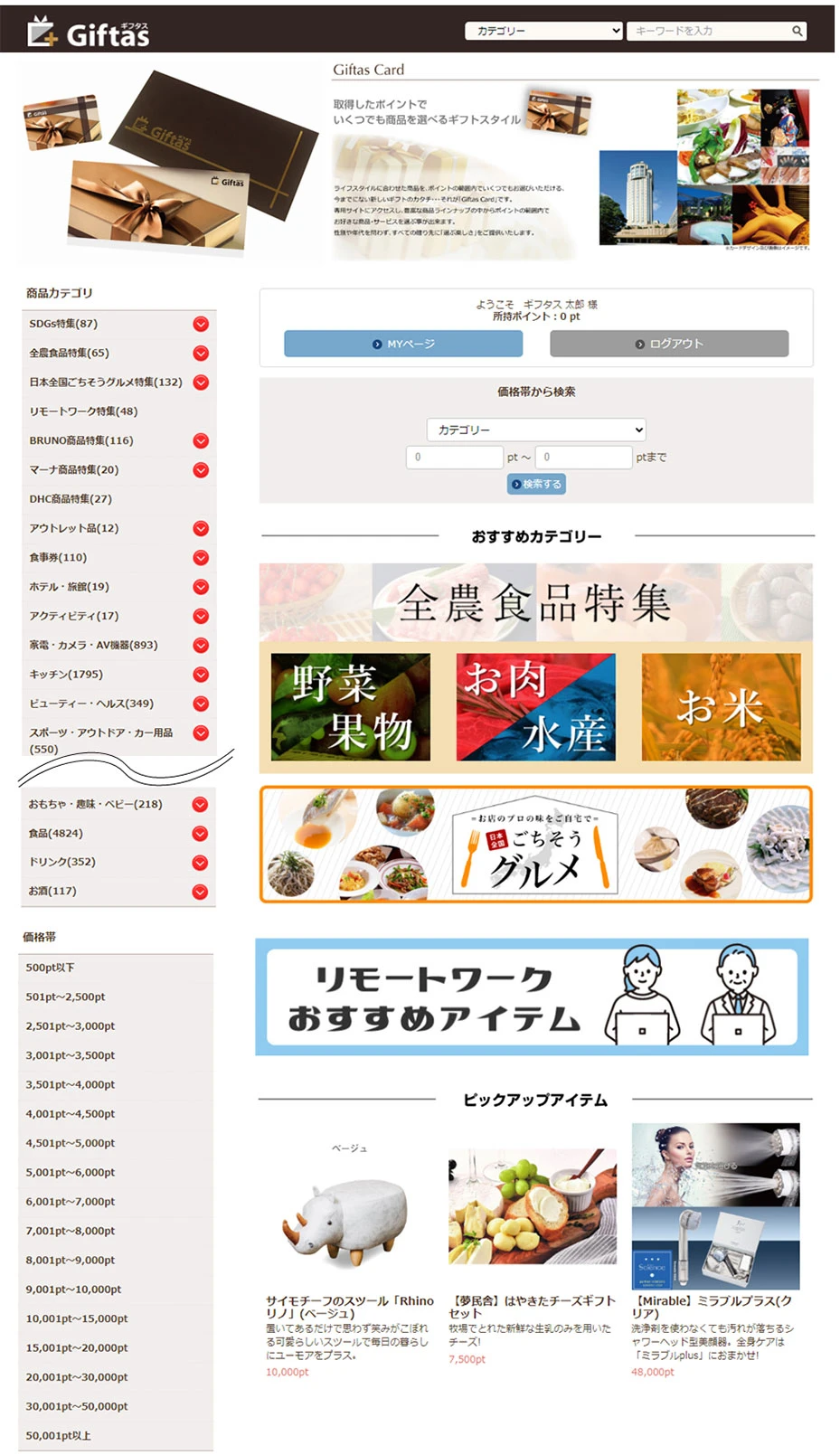 WEBカタログギフトカード 「Giftas・ギフタス」の導入事例