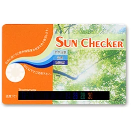 日光に当てると、強度によって色が変わる紫外線強度チェック機能と、液晶温度計を合わせた多機能チェックカードです。夏のお出かけには必携!