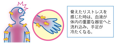 人間の体は生理学的に、脅えたりストレスがたまった時に血液が体内の重要な器官に集まり、手足の先の体温が下がります。