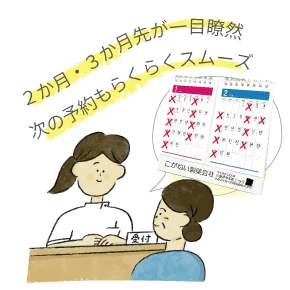 次の予約が取りやすい2か月連カレンダーは受付で大活躍。病院やクリニックで大変喜ばれます。