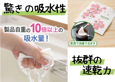 □吸水量はが製品自重の10倍以上!吸水性が抜群なので水分をみるみるうちに吸い取ります □煮沸消毒が可能!衛生面でも優れており、繰り返し使用できます □植物性繊維「セルロール」が原材料だから土に埋めれば生物分解され、土に還ります □北欧で大人気の「エコふきん」と同様の高品質ドイツ製セルロースを使用!