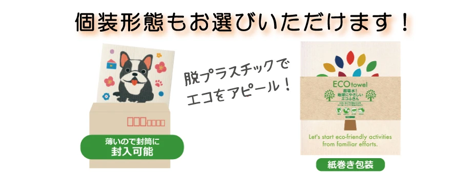 □エコふきん全体にデザイン可能 □フルカラー印刷可 □写真印刷可