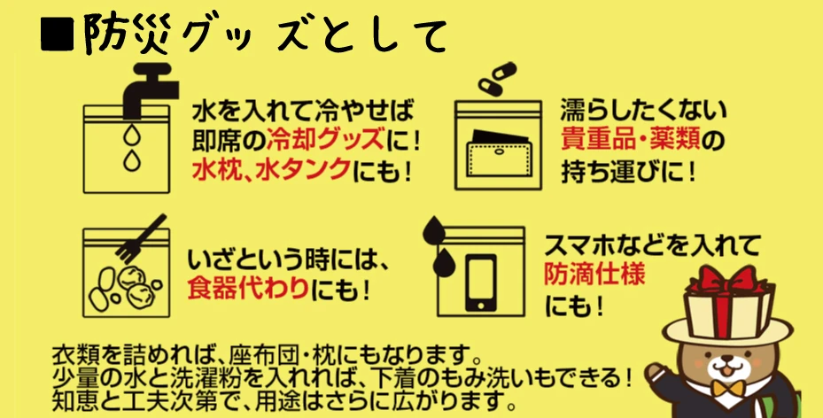 □絶対に使ってもらえるノベルティ・販促品を作りたい □自社キャラクターがある □実用的なバラマキ景品に使いたい □防災・災害時にも活用できるアイテムを作りたい