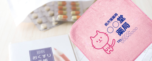 薬局・医療関係では清潔な名入れタオルは最適の粗品・ノベルティに。