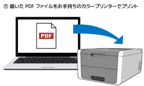 お送りしましたPDFファイルを、お手持ちのカラープリンターにて印刷してください。