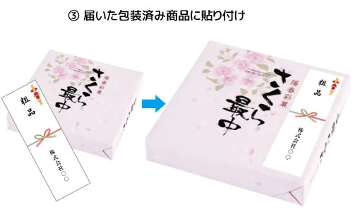 以下のかんたんな手順で、のしを付けたギフトが完成します。