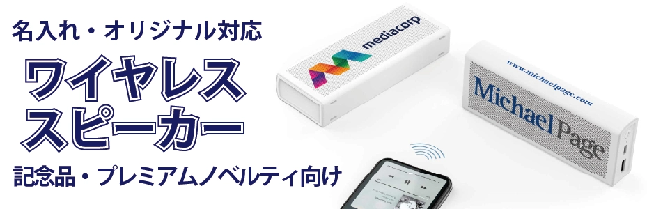持っていると便利なワイヤレススピーカーを記念品のすることで貰って嬉しい記念品をさらに喜ばれる記念品にパワーアップさせることができます。