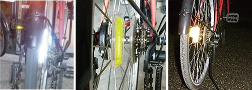 画像は従来の自転車の後部にに取り付けられている3種類の反射板です。
