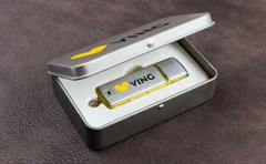 自然素材の木製ケースにUSBメモリ収納でアピール度抜群。